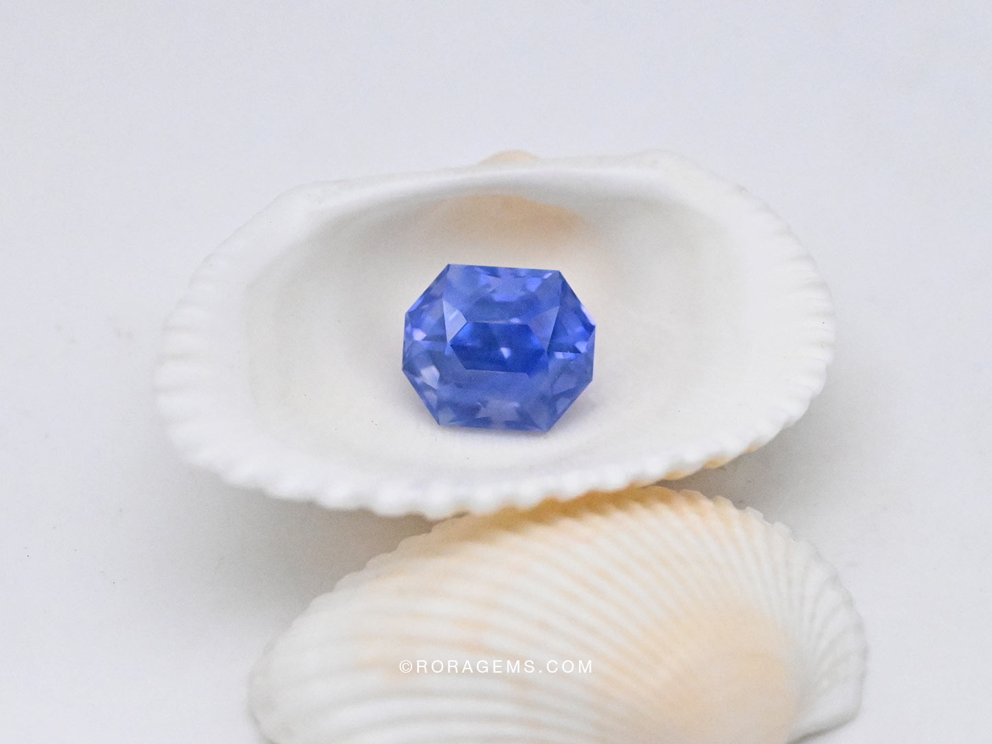 Discover the timeless elegance of an exclusive natural cornflower blue sapphire in the highly sought-after cornflower blue color. This 3 carat (2.94 total weight) rectangular fancy cut sapphire is not only an investment grade gemstone but also a symbol of sophistication and prestige.