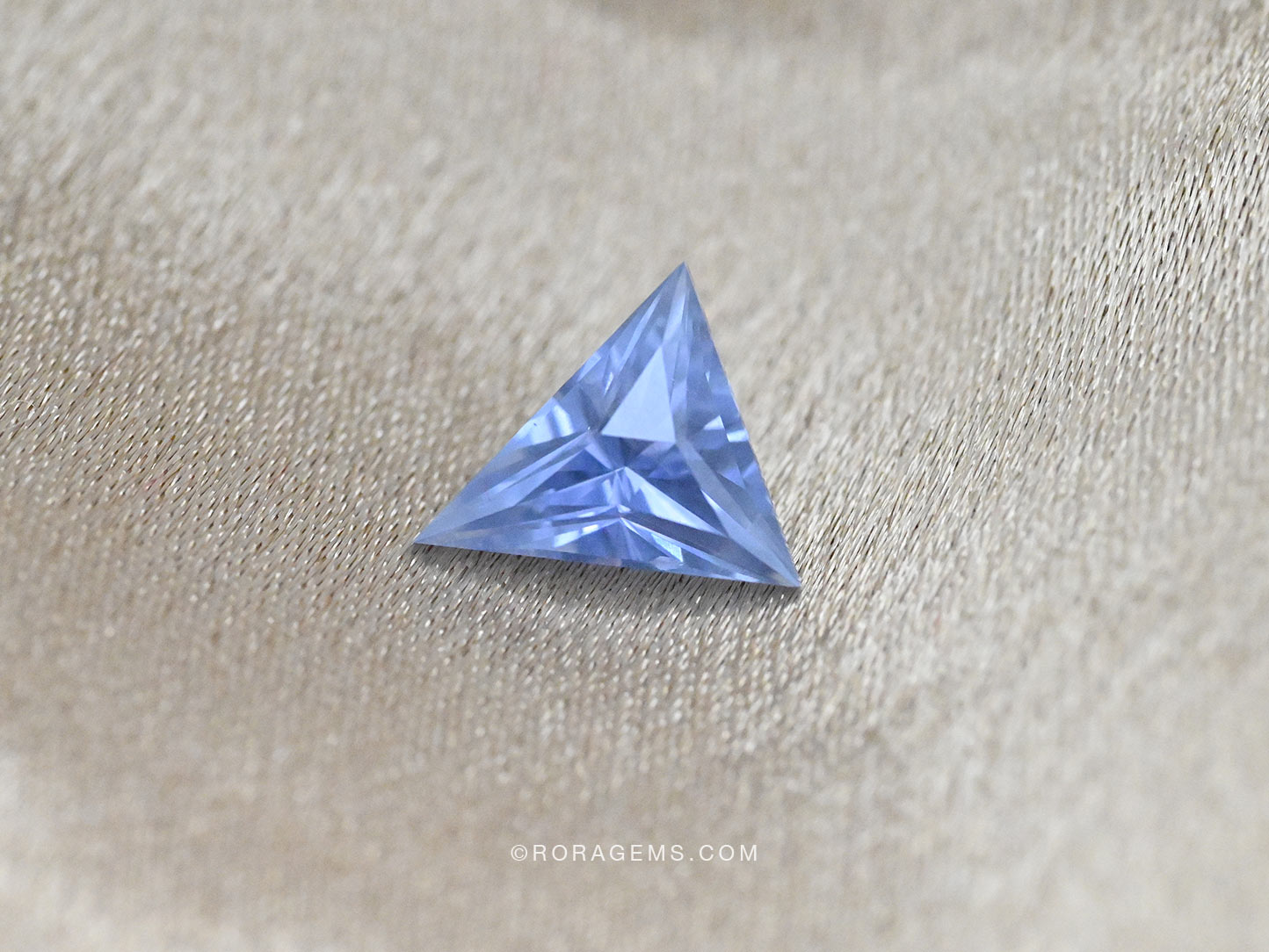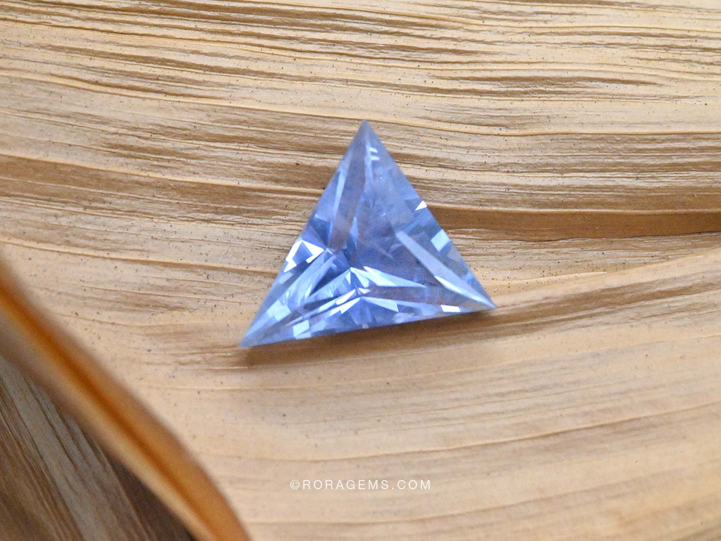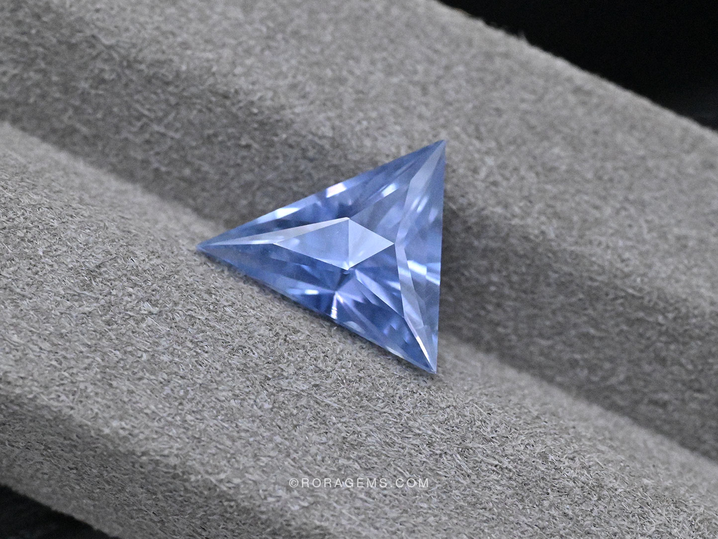 A captivating 4 carat Untreated blue sapphire in a rare light blue fancy color, expertly crafted into a modern triangular shape. This untreated gem showcases remarkable brilliance and a unique 3D optical effect, the result of masterful precision cutting. A one-of-a-kind stone ideal for high jewelry creations or discerning collectors seeking something truly extraordinary.